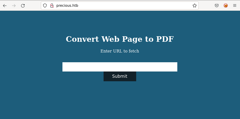 Donc comme prévu, une box linux avec du ssh et du web, ajout dans mon /etc/hosts de l’ip avec le nom : 10.10.11.189 precious.htb