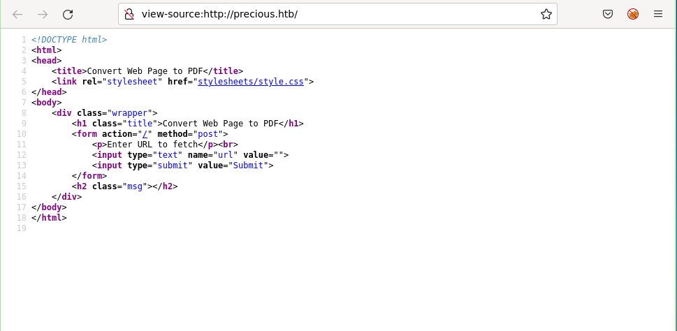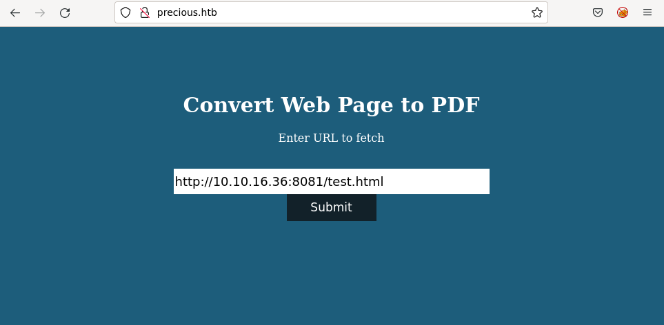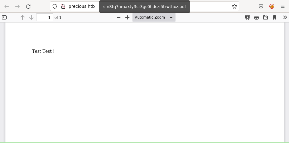 Je teste quelques url extérieures sans succès, pas mieux sur le localhost ou sur http://precious.htb